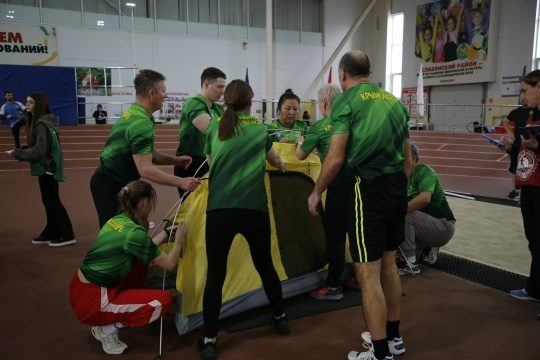 Участники демонстрировали свои навыки в различных дисциплинах, включая прыжок в длину с места толчком двумя ногами, сгибание и разгибание рук в упоре лежа на полу, поднимание туловища из положения лёжа на спине, бег с отягощением, приседания и установка палатки.