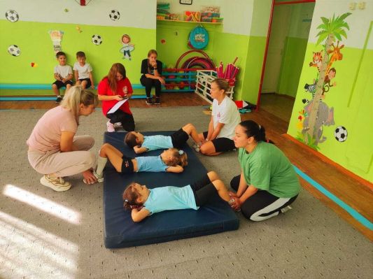 .Ребята выполнили испытания I ступени (возраст 6-7 лет): прыжки в длину с места, метание мяча цель, упражнение на пресс и т. д.