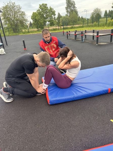 В программу фестиваля входили: наклон вперед из положения стоя на гимнастической скамье; поднимание туловища из положения лежа на спине за 1 мин.; подтягивания из виса на высокой перекладине (мальчики и папы); сгибание и разгибание рук в упоре лежа на полу (девочки, мамы и бабушки); бег 60 метров (папы и мамы); бег 30 метров (мальчики, девочки); прыжок в длину с места толчком двумя ногами (мальчики, девочки).