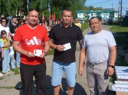 Евгений Петрович участникам праздника, выполнившим нормативы Всероссийского физкультурно-спортивного комплекса «Готов к труду и обороне» (ГТО) вручил знаки ВФСК «Готов к труду и обороне» (ГТО) различного достоинства согласно возрастным ступеням, также были вручены благодарственные письма министерства спорта Самарской области за участие в организации физкультурных мероприятий в Самарской области и зачетные классификационные книжки спортсменов 2,3 и юношеских разрядов.