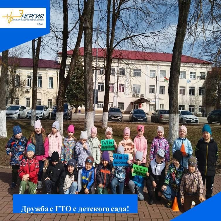 Подготовительная группа детского сада «Колокольчик» г. Медынь, в рамках акции «Дружба с ГТО с детского сада» провело спортивное мероприятие на открытом воздухе, целью которого является вовлечение детей в систематические занятия физической культурой и спортом.