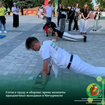 В День города на центральной площади им. И.В. Мичурина прошёл спортивный праздник «Мичуринск и ГТО», где была развернута площадка активностей «Готов к труду и обороне». Это мероприятие проводится в рамках государственной программы «Спорт России» и помогает жителям города проявить свою силу и выносливость, вдохновляя на активный образ жизни.