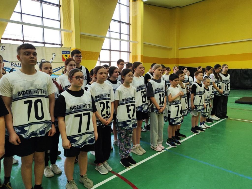 ????75 юных спортсменов собрались сегодня в спортивно-оздоровительном комплексе «Фрегат», чтобы продемонстрировать свою физическую подготовку и выносливость на муниципальном этапе Летнего фестиваля Всероссийского физкультурно-спортивного комплекса «Готов к труду и обороне».