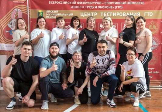 В рамках первомайской акции профсоюзов в Яйском районе в 2024г под девизом "Достойный труд каждого гарантия благополучия семьи и развития страны" работники ГАУЗ Яйская РБ , члены первичной профсоюзной организации выполнили нормативы ГТО (Готов к труду и обороне).