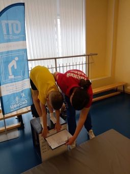 Ребята соревновались в выполнении нормативов комплекса: прыжок в длину с места, челночный бег, наклон вперед из положения стоя на гимнастической скамье, силовые...