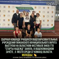 Сборная команда школьников Пижанского муниципального округа выступила на областном фестивале ГТО "Старты надежд" и заняла 5 место из 37 команд. Это прекрасный результат, так держать!