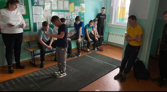 Ребята с 1 по 8 классы выполняли упражнения на гибкость, сгибание и разгибание рук в упоре лежа на полу, прыжки в длину с места, челночный бег.