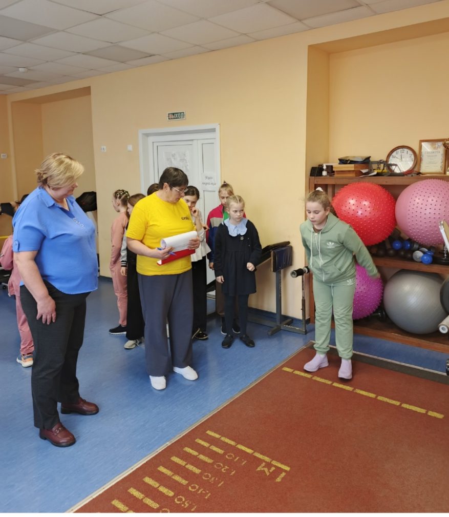 Участники выполняли такие виды испытаний (тестов) комплекса ГТО как: -прыжки в длину с места.