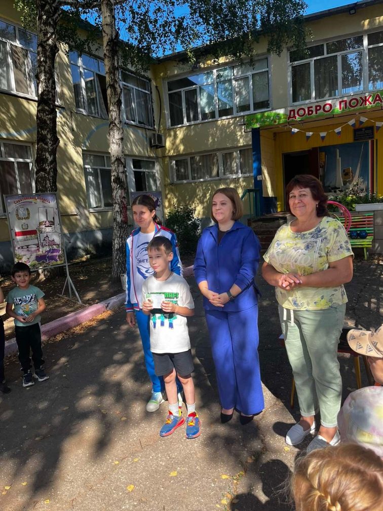 В честь дня физкультурника в МДОУ "Детский сад № 71" был проведён спортивный праздник "Сильнее, выше, быстрее", на который были приглашены бывшие выпускники ДОУ для вручения знаков отличия ВФСК ГТО, знаки вручала бывшая воспитанница, трёхкратный обладатель золотого знака отличия ГТО в разных возрастных ступенях, Мастер спорта по плаванию, призёр Кубков, Первенства и Чемпионата России по плаванию Игнатова Валерия.