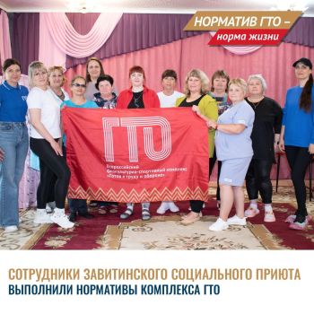 В рамках летнего проекта – «Быть с ГТО, а не казаться….», приуроченного к 10-летию подписания указа президента РФ о возрождении Всероссийского физкультурно-спортивного комплекса «Готов к труду и обороне» (ГТО) специалисты Центра тестирования посетили социальный приют для детей с программой, которая включала в себя не только выполнение нормативов комплекса ГТО, но и состоялся просмотр мотивирующих видео роликов о ВФСК ГТО, здоровом образе жизни, ЦТ ГТО и спортивной школе Завитинского муниципального округа, обладателях знаков отличия ГТО, лучших спортсменах по итогам 2023 - 2024 года и многое другое.