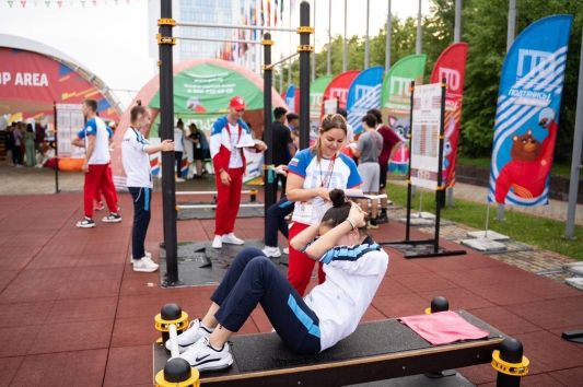 В Деревне Универсиады на площадке ГТО были доступны 6 видов испытаний: «Наклоны вперед из положения стоя», «Поднимание туловища», «Прыжки в длину» и другие. Наши нижнекамские специалисты Центра тестирования ГТО вошли в состав судейства #brics2024 в лице Динары Галлямовой, Алины Николаевой и Ильнура Галлямова. Они помогали участникам с правильной техникой выполнения, а также знакомили спортсменов с движением и вручали памятные сувениры.