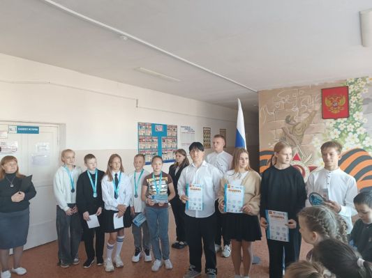 На линейке наградили юных биатлонистов (руководитель Именных М.И.), которые 20 сентября 2024 г. приняли участие в Финале соревнований Всероссийского биатлонного марафона по программе "Биатлон в школу, Биатлон в ГТО, Биатлон в колледж", прошедший на базе СОК "Калининец" в г. Екатеринбург.