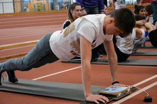 В программу соревнований вошли челночный бег, прыжки в длину с места, поднимание туловища из положения лежа, подтягивание на высокой перекладине/ отжимание, наклон стоя на гимнастической скамье.