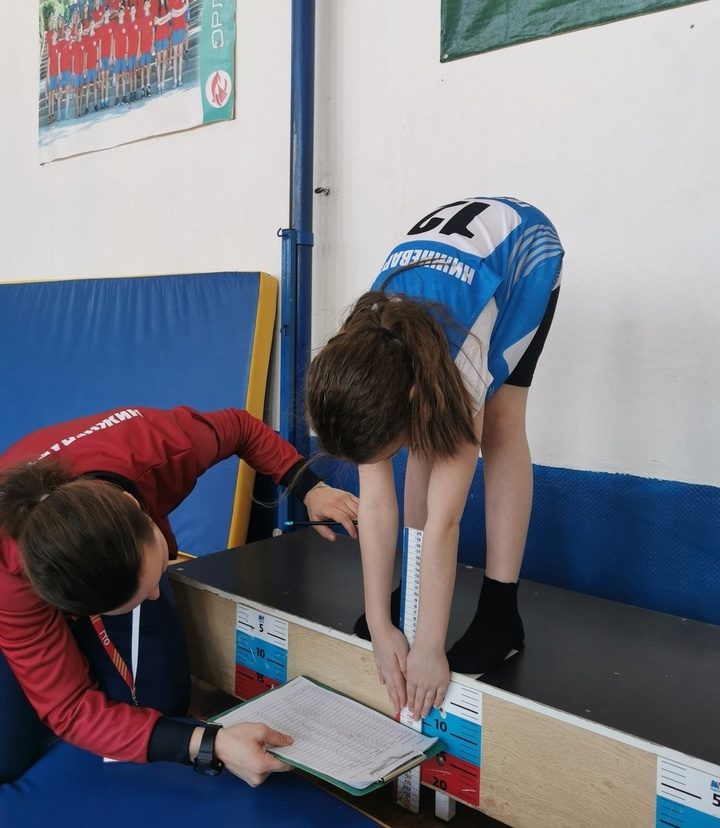 - наклоны вперед из положения стоя с прямыми ногами на гимнастической скамье;