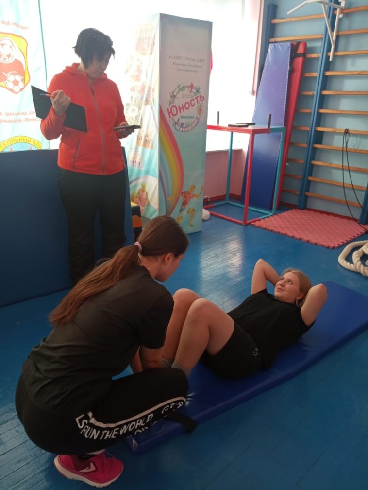поднимание туловища из положения лежа на спине.